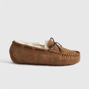 Quince Australian Shearling Moccasin Slippers in Pecan