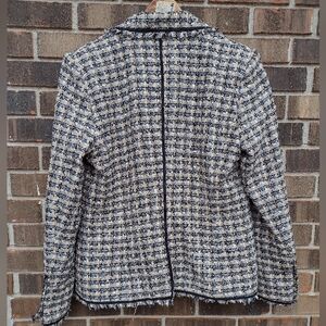 Veronica Beard Theron Tweed Blazer Navy Gold Button Double Breasted 10 NWOT