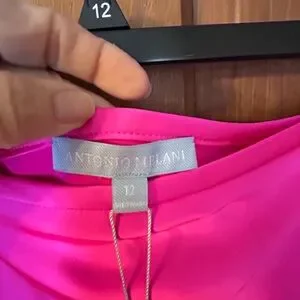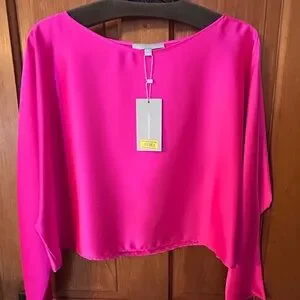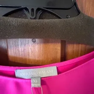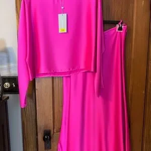 Silky and stylish! This eye catching crop top and flared skirt is NWT. Top is XL: skirt has a hidden side zipper and is 16.5 inches across at waist and 35 inches long.