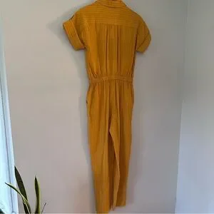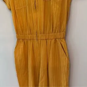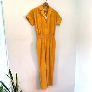 Trina Turk Evenfall Jumpsuit Honey Mustard Yellow Short Sleeve Cropped Size XS