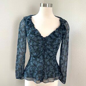 Veronica Beard Womens 0 Floral 100% Silk Ruffle Button Up Floral Blouse Shirt To