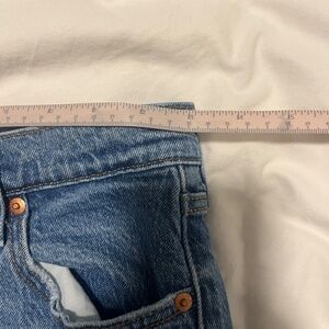 Selling a pair of Levi’s Ribcage Straight Ankle Jeans in a size 26, 29” inseam. These jeans have a button fly closure.
