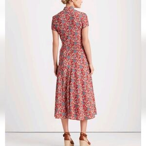Ralph Lauren Floral Midi Dress Belt Red Blue Lined Fit Flare V Neck NWOT 10