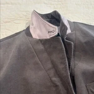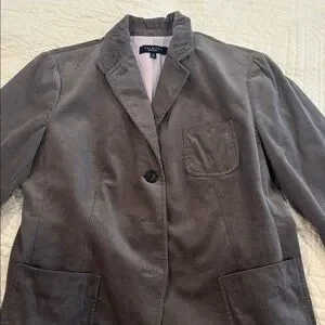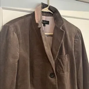 Chic gray blazer by Talbots. Features a stylish pink lining. Perfect for a polished look.