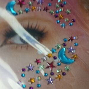 Enhance your look with this stunning set of multicolor face jewels. Perfect for festivals and special occasions.