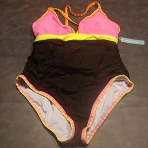 NWT! Popvil Vibrant Pink and Black One Piece Tie Back Swimsuit