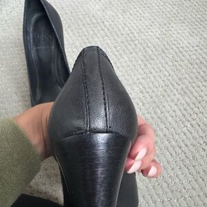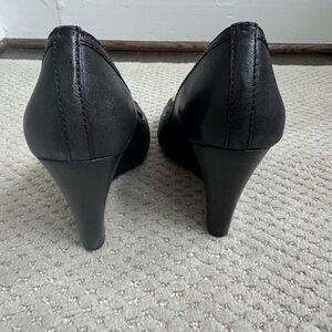 Tory Burch Black Wedge Heels with Gold Emblem