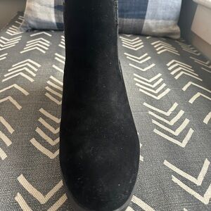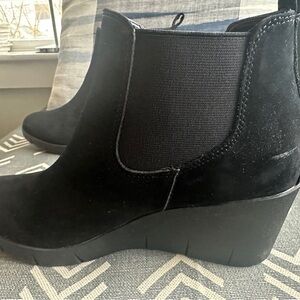 Stylish black ankle boots with a comfortable wedge heel. Perfect for versatile wear.