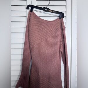 NWT Bohme Elegant Off-Shoulder Asymmetrical Ribbed Knit Maxi Dress Clay Small