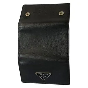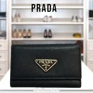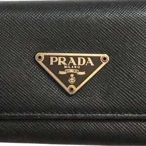 Prada Logo Black Silver Plaque Tri-Fold Key Case Key Unisex Logo Luxury HP