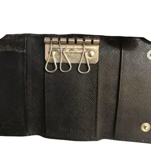 Prada Logo Plaque Tri-Fold Key Case Prada 3 Key Holder Unisex Logo Black Silver.
