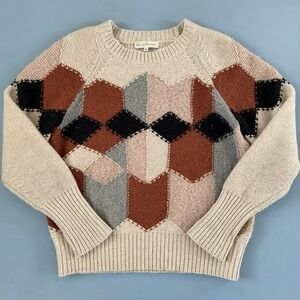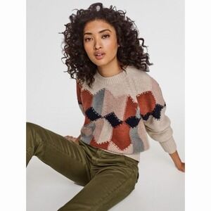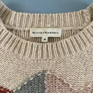 White + Warren Diamond Intarsia Crew Buff Multi Merino Wool Sweater