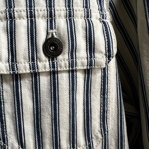 Vintage Lauren Jeans Co. Women's Stripe Denim Jacket Size Sp Blue Off White EUC