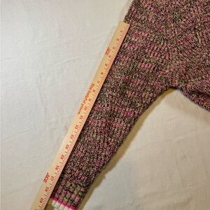 Chic knit sweater with vibrant pink and green blend. Features a crew neck and cozy texture. Perfect for casual wear.