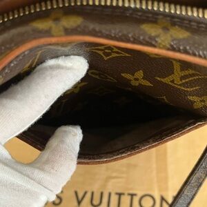 Louis Vuitton Monogram Danube PM Crossbody Shoulder Bag Unisex 1989,with heat stamp and code.All canvas bright,no nicks,missing stitches.Brass hardware shiny bright.Zipper operates flawlessly.Exterior and interior slip pockets permanently cleared of any peeling,so prevalent in LV vintage.Interior leather pristine,no stains,odors.Both chaps excellent,one with more sway(pic6,7).Strap has shiny grommets and buckle.Gorgeous patina’d Vachetta,no rubs, amazingly minimal markings(pic1-3,5-8).Can fit wallet,keys, essentials