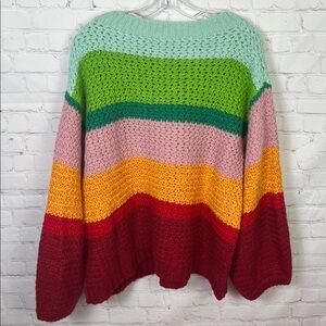 Farm Rio Oversized Rainbow Striped Sweater