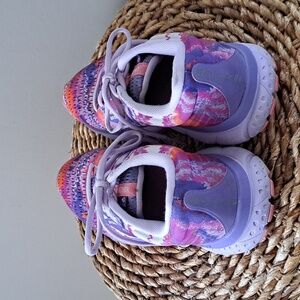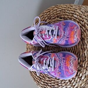 Trending athletic brand Brooks women's performance running/training/activewear sneakers in purple, pink, coral and white tie dye print knit. Pre-owned and in very gently used condition. Minor wear on inside heel fabric. Please see pictures.