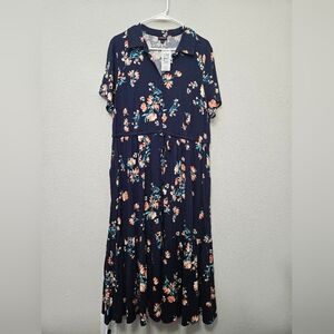 This is a nwt plus sized 1x floral button down front midi dress. elastic waist tie. tiered lower half. collared. Boho-chic style dress.