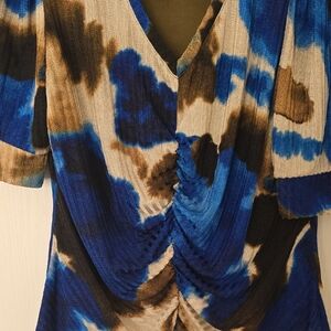 DKNY Multicolor Abstract Tie Dye V-Neck Blouse With Gathered Center Size XL