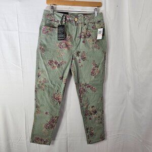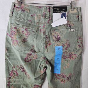 NWT Seven 7 Jeans Womens 10 High Rise Ankle Skinny Green Floral Stretch Denim