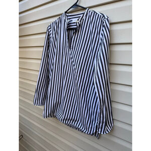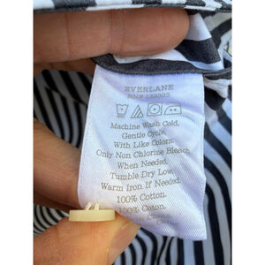 Everlane Black White Stripe Split Neck Popover Tunic Top Sz 10 100% Cotton
