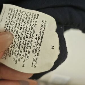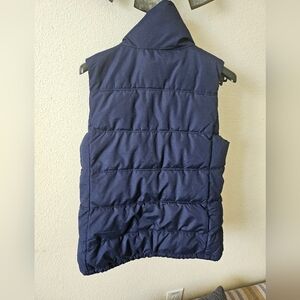 Stylish navy puffer vest with a high collar and front zipper. Perfect for layering