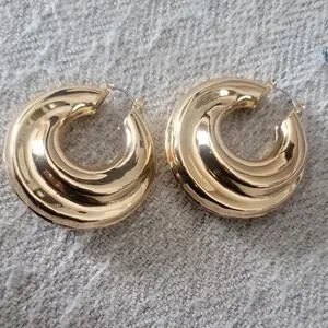 Add a touch of elegance to your look with these stunning gold hoop earrings. Perfect for any occasion.
