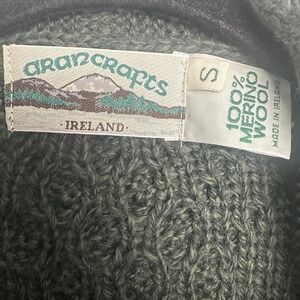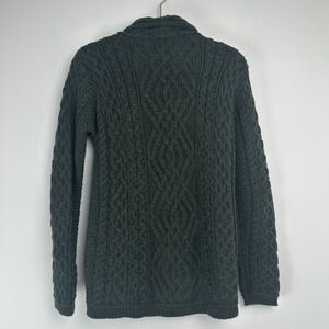 Aran Crafts Women's Cardigan Size Small Green Wool Ireland Cable Knit Fisherman