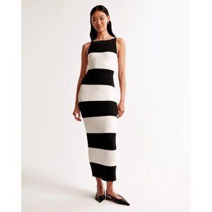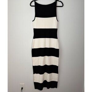 Abercrombie & Fitch High Neck Midi Knit Dress Black White Stripes Large