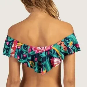 One of our most popular swim top silhouettes, this off-the-shoulder ruffle bandeau top is back in a new summer print. This off-the-shoulder bikini top is colorful, feminine, and just what you need in your vacation wardrobe.