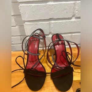 Pretty heels, hard to display, they wrap around your leg and tie up a little. Very nice in good preowned condition, hardly worn.