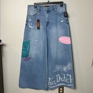 Von Dutch Eyeball Wide Leg Jeans - Light Wash NWT, Juniors Size 15. New with tags!