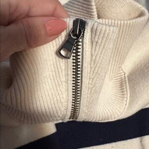 Just as effortless as it is essential, this timeless pullover is featured in an oversized, relaxed fit with zip-front neckline and staple striping throughout for a classic, coastal touch.
