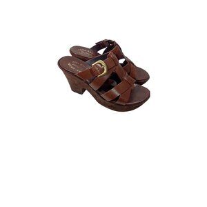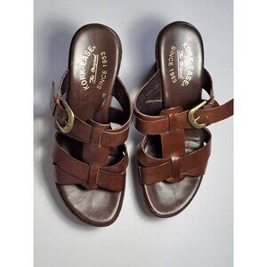 Kork-Ease Beatrice Brown Leather Strappy Wedge Platform Sandals Clogs Size 7/39
