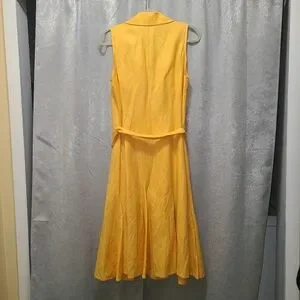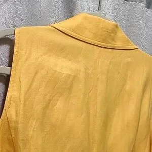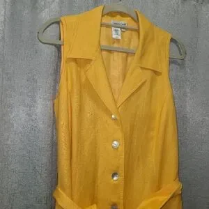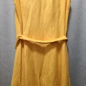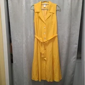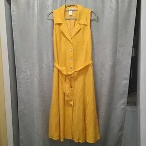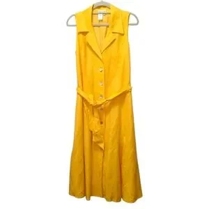 COLDWATER CREEK yellow linen blend sleeveless Maxi Dress Modest Button Up Size 16 P