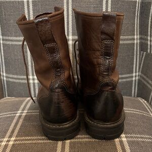 Durable brown leather work boots designed for comfort and protection. Perfect for tough environments. Bought these to wear at work but they're just too nice.😃