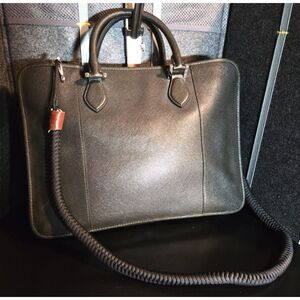 Beautiful cross grain leather MCM laptop or documents case in excellent condition. Black with gold hardware, the interior is black, silky monogrammed. This is not the original strap, but this one compliments it really well, it's comfortable and sturdy and is easily swapped out. This is large enough for a small laptop or large tablet, it will not hold a full sized laptop (my Lenova Yoga is just a tiny bit too long to fit comfortably).
