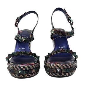 Christian Louboutin platform wedge Pyraclou sandals shoes Size 38.