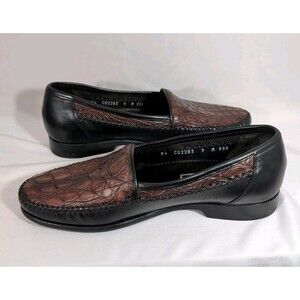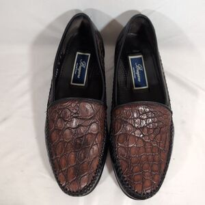 Bragano by Cole Haan Size 9 Croc Embossed Brown Leather Italian Loafers Reptile Print Caiman Alligator Animal’s Kin Made in Italy Dress Shoe