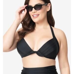 Unique Vintage Retro Black Monroe Bikini Top 1X NWT