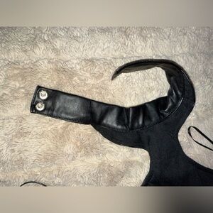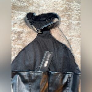 Elegant Black Halter Dress sexy stunning leather glossy look Bodycon slimming