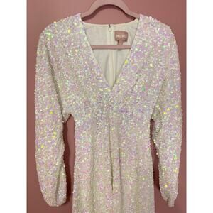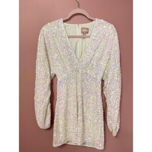 NEW Show Me Your Mumu Kidman Long-Sleeve Sequin Mini Dress in White Size Small