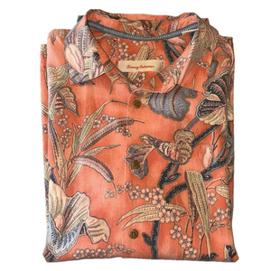 Tommy Bahama Mens Medium Floral Peach 100% Silk Hawaiian Shirt