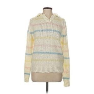Vintage 80s Carriage Court Pastel Striped Knit Hoodie Sweater – Made in Taiwan