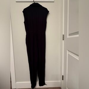 Chic black jumpsuit with cap sleeves. Features button-up front and elastic waist. Buttery soft fabric. Ideal for versatile styling. Smoke free home. Like-new condition.