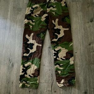 Authentic Polo Ralph Lauren camo print pants in excellent used condition. Classic woodland camouflage pattern with button details and elastic waistband for comfort. Made in India. Youth size 16, but can fit slimmer adults depending on waist/length.