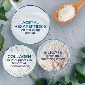 Purified Water (Aqua), Propylene Glycol, Sodium Silicate, Magnesium Aluminum Silicate, Acetyl Hexapeptide-8, Hydrolyzed Rice Protein, Soluble Collagen, Cellulose Gum, Xanthan Gum, Titanium Dioxide, CI 77491, CI 77492, Phenoxyethanol, Ethylhexylglycerin.