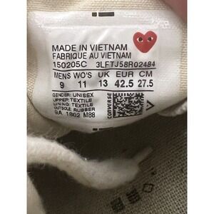 Converse Chuck 70 Hi Comme Des Garçons White Red Men's Size 9 150205C