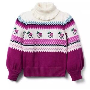 Janie and Jack Burgundy and Cream Floral Turtleneck Sweater. Size 7. Great Cond