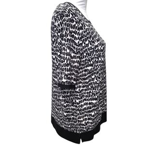 Stylish black and white women's top with a modern pattern. Perfect for any occasion.